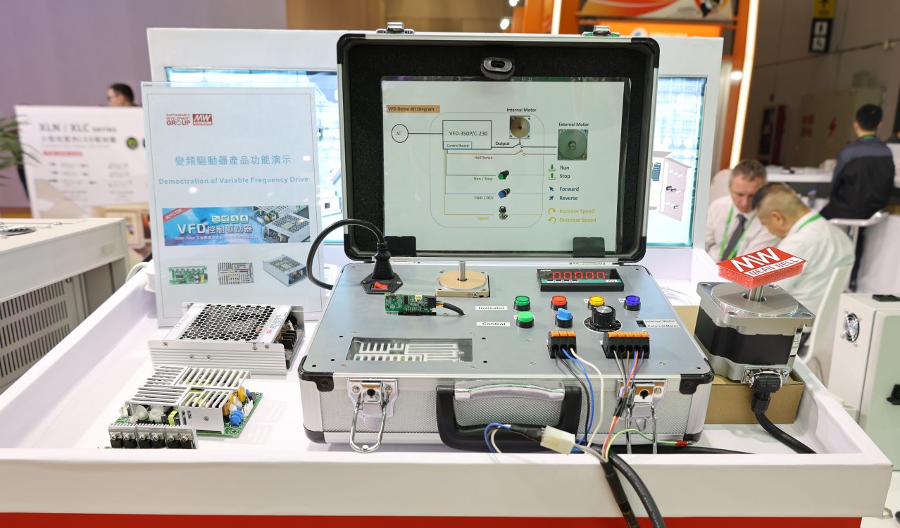 為回應全球淨零碳排議題,明緯特別規劃推出全新產品線:「VFD系列:工業用直流無刷馬達變頻控制驅動器」。全系列 VFD 驅動控制器採無風扇設計,無噪音、效率最高達 93%、並可提供 200% 峰值電流;內建完整保護功能,符合國際安規 IEC/EN61800-5-1 及電磁相容 IEC/EN61800-3 標準。適用於具有風扇及空調、抽排煙設備、水泵、AGV、電動工具、自動門或機械設備裝置、輸送帶、醫療器材、健身器材…等採用直流無刷 BLDC 馬達的終端系統及產品。更多資訊可參考線上展覽館(LINK),產品視頻介紹(LINK)。